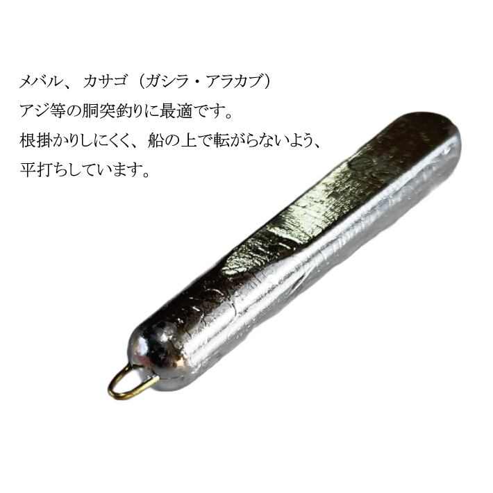 根掛かりしにくく、船の上で転がらないよう平打ちしています。
