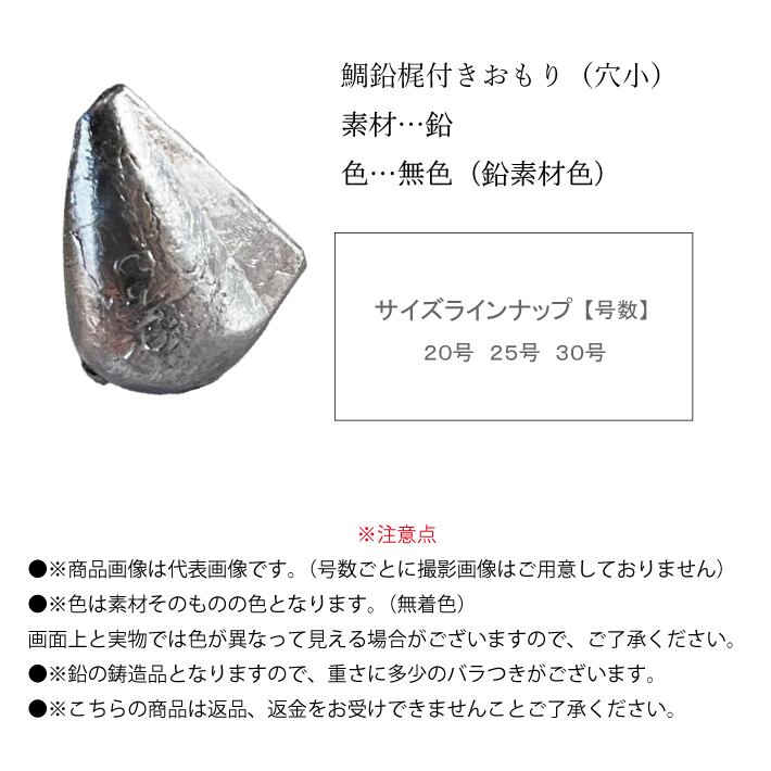 遊動式の鯛テンヤ用オモリです。有明海でよく使われています。穴径は1.4mmです。