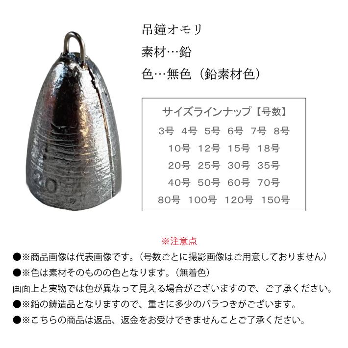 吊鐘オモリ【1kg徳用パック】【8号 10号 12号 15号 18号 20号 25号 30号 35号 40号 50号 60号 70号】釣り オモリ おもり 錘 重り フィッシング 鉛 日本製 吊鐘 吊鐘おもり 釣鐘 釣鐘オモリ つりがねおもり カン付き 管付き 波止釣り 船釣り