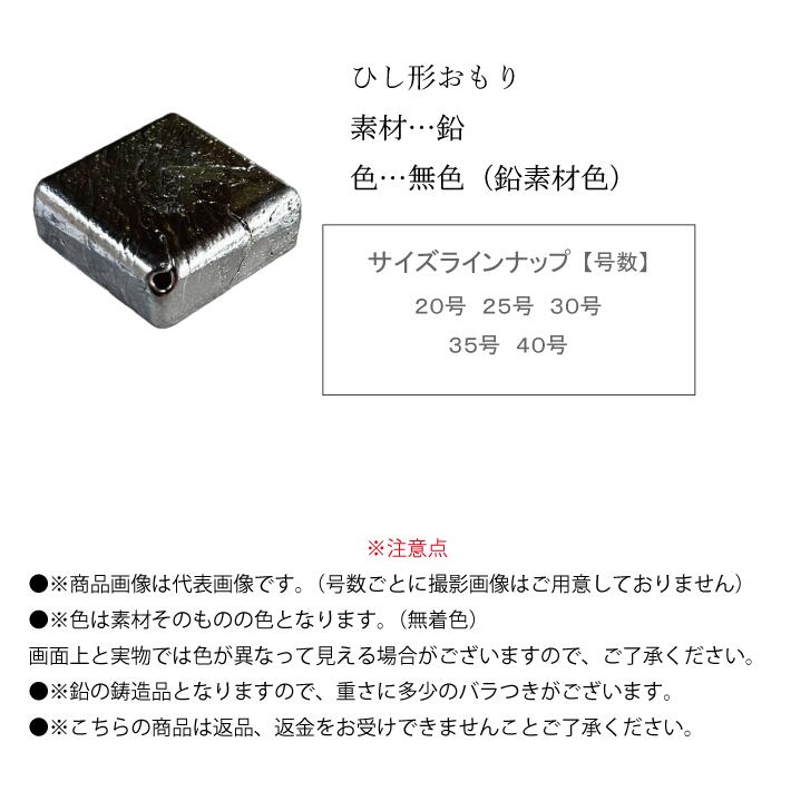 ひし形オモリ【1kg徳用パック】【20号 25号 30号 35号 40号】おもり 錘 釣り オモリ 重り 鉛 日本製 フィッシング ひし形 四角 ヒシ型おもり 中通し 中通しオモリ 中通しおもり 鯉 鯉釣り