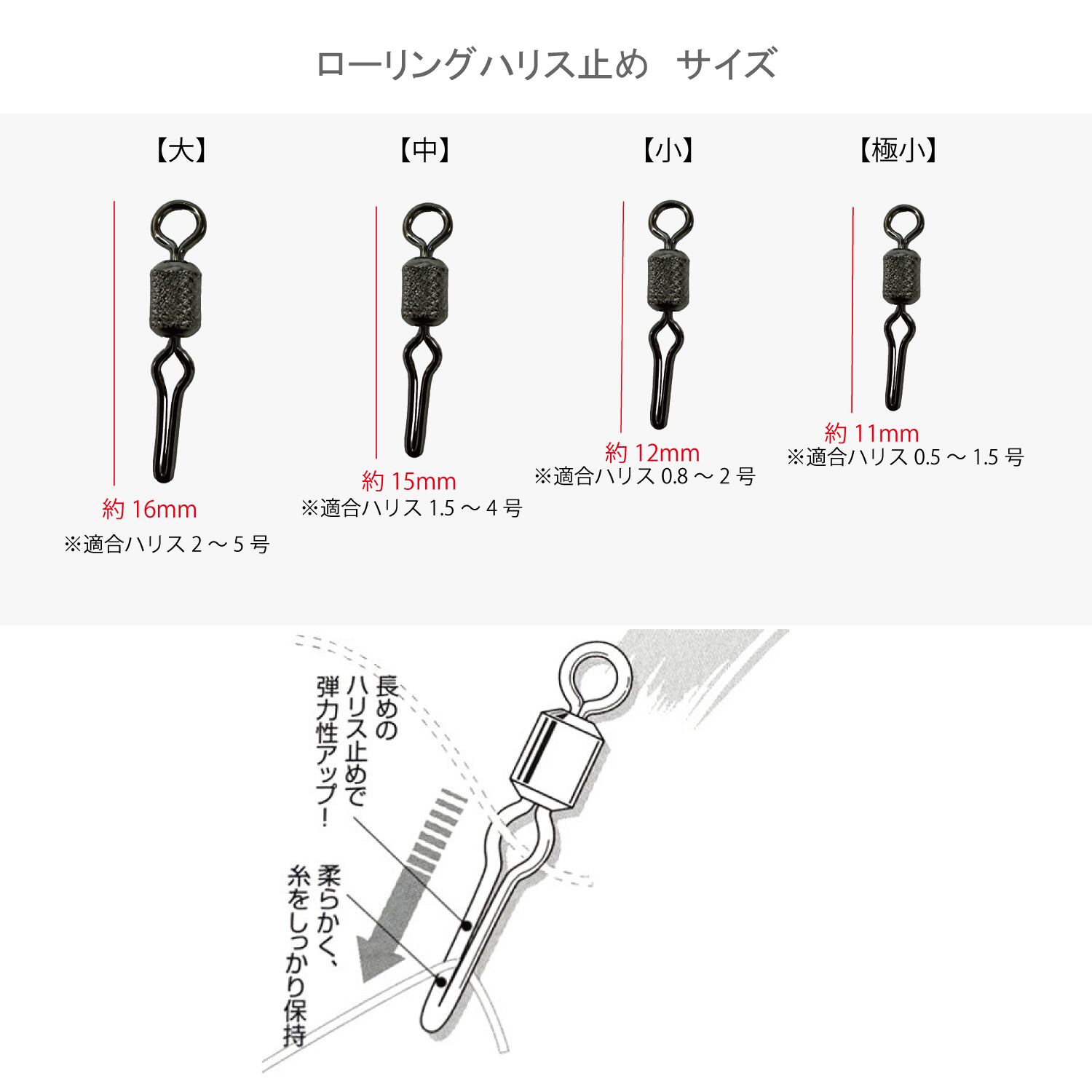 日本製 ローリングハリス止め (AJ)【50個入り 徳用パック】【大 中 小 極小】ハリス止め ローリング サルカン スイベル 猿環 よりもどし より戻し 撚り戻し 釣り フィッシング 仕掛け 仕掛 釣り具 ヨリモドシ 海釣り 船釣り 糸ヨレ防止